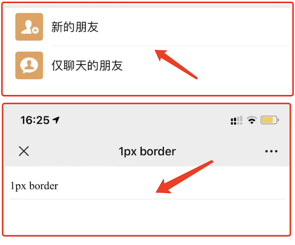 如下图,上面是微信 app 的 border ,下面是 1px 的 border ,有明显的区别。显得很粗糙,很不精致,设计师不会允许这样的页面发布上线的。
