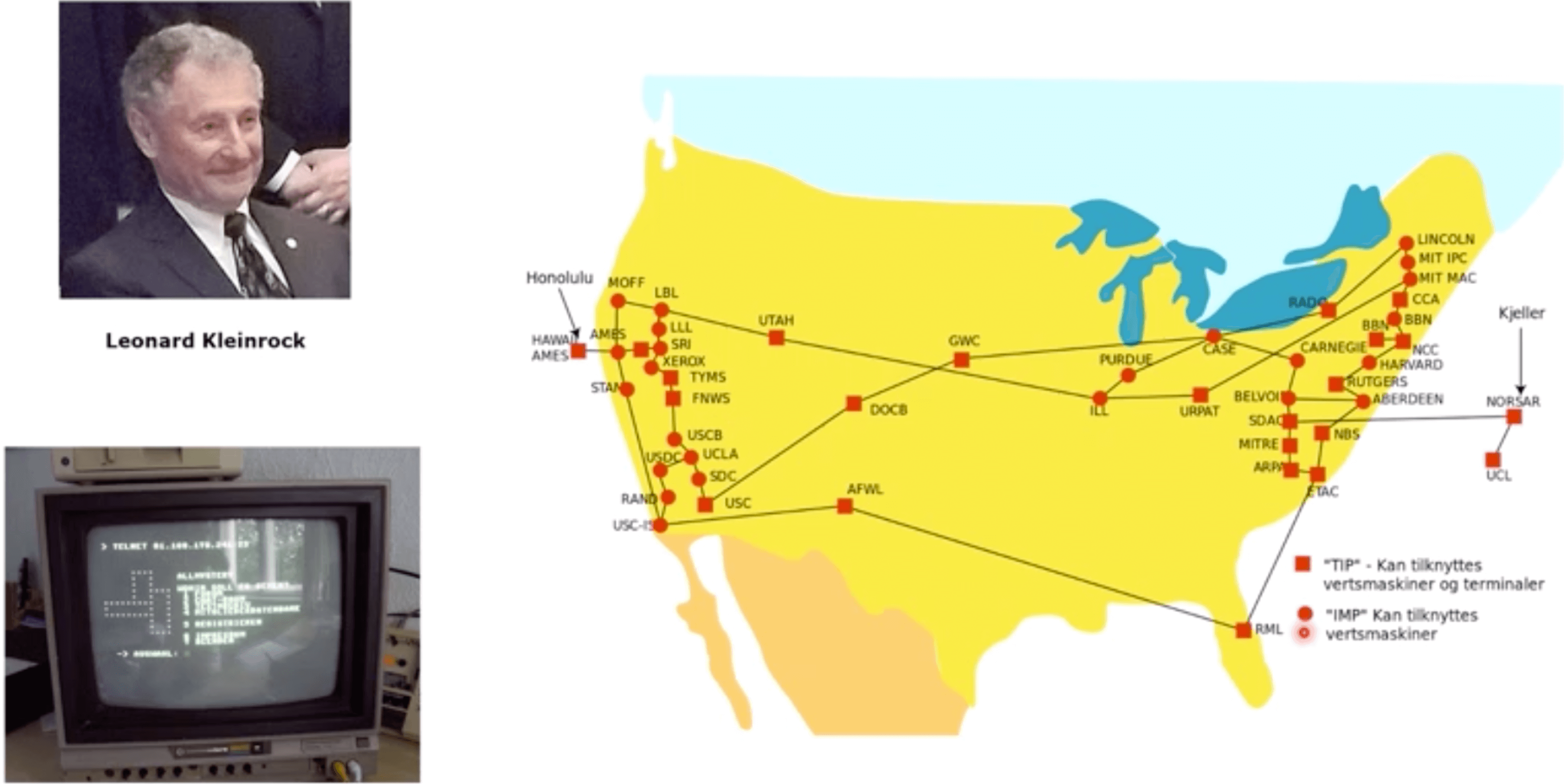 ARPA那时候不叫计算机网路,有一个叫做数据网的方向,黄色部分连接的美国的地图。