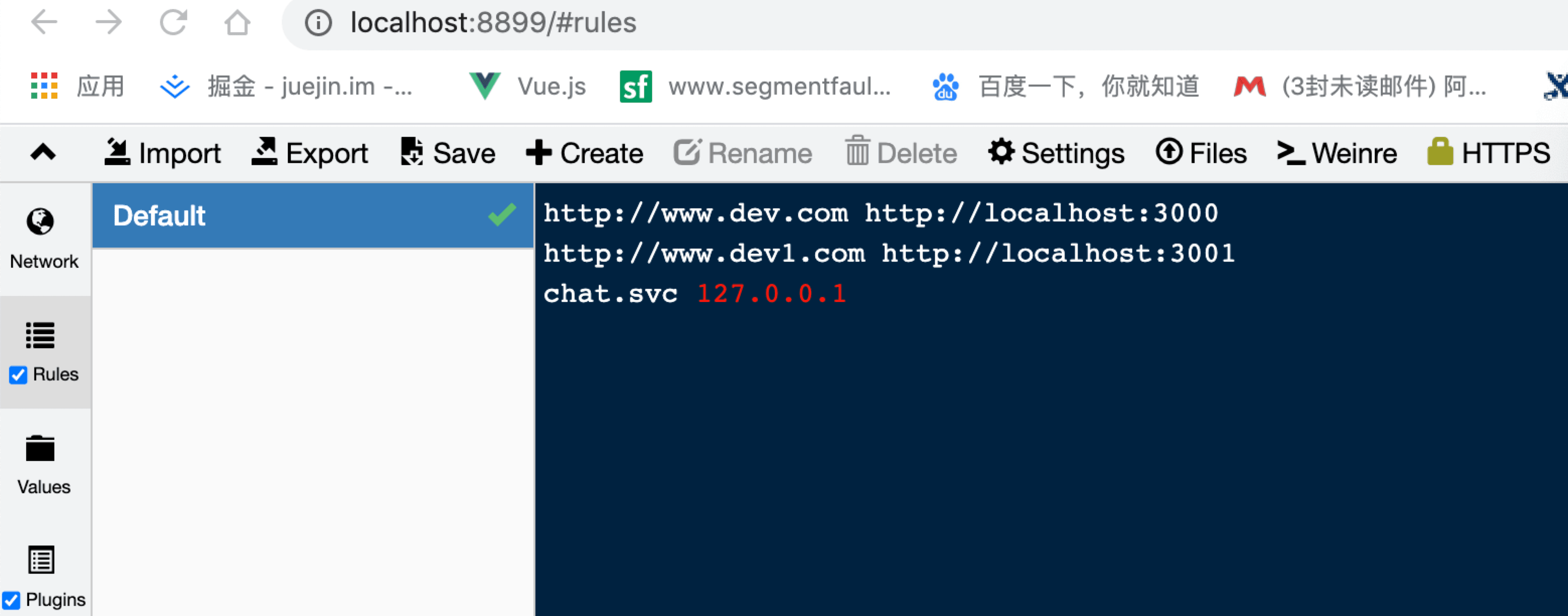 SwitchOmega # 谷歌代理插件,可以配置127.0.0.1:8899的服务上