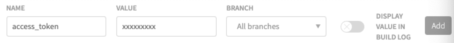 name设置为access_token,value设置为github上生成的token,点击add添加环境变量。