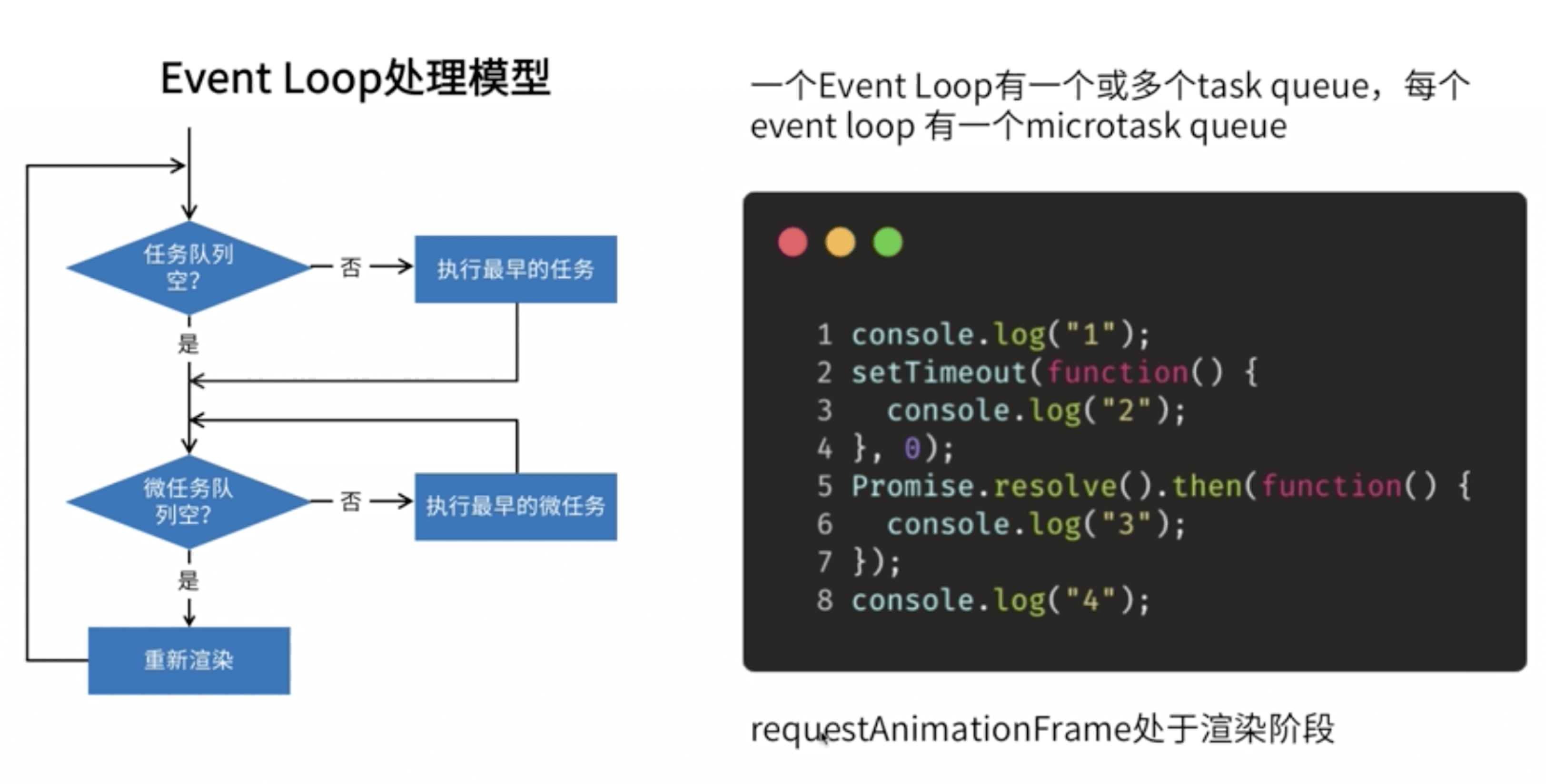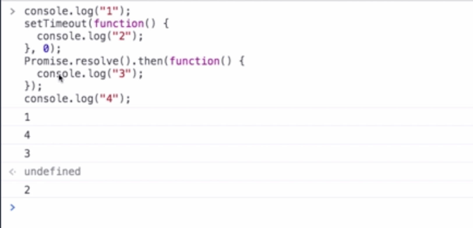 代码在执行栈中执行,然后 1=>2=>3=>4