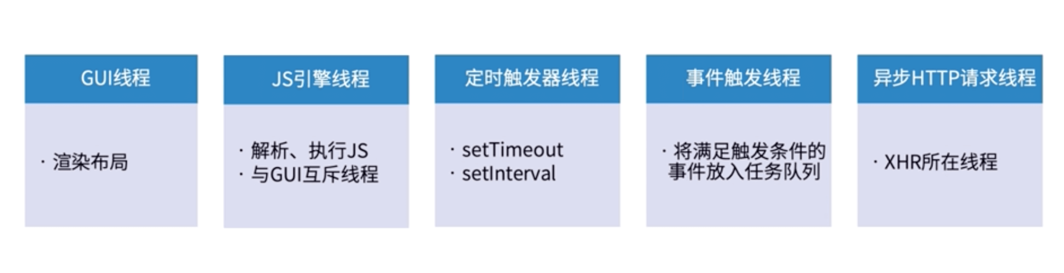 异步 HTTP 请求线程:用与处理 ajax 请求的,当请求完成时如果有回调函数就通知事件触发线程往任务队列中添加任务