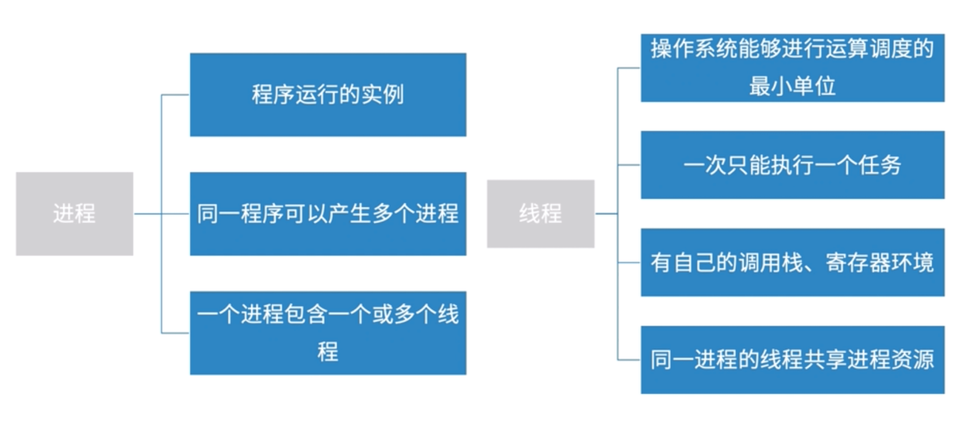 打个比方:假如 cpu 是一个工厂,进程就是一个车间;线程就是工人,一个进程有多个线程,它们之间资源共享,也就内存空间共享。